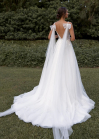 Experience modern romance in Rosalba. This lace and tulle masterpiece boasts a plunging neckline with sheer lace, detachable back bows, and chic tulle side cutouts. With built-in support and a sultry plunging v-back, it ensures effortless elegance. Complete with an invisible zip, this floor-length A-line gown is available in Vintage White & Vintage White/Pink Rum. Perfect for the bride who embodies contemporary sophistication with ease.