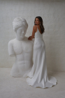 La douce jupe sirène, avec une audacieuse fente de recouvrement, crée une silhouette saisissante, tandis que la traîne ajoute une touche de grandeur à votre démarche.