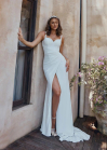 Son décolleté classique en cœur est associé à de larges bretelles plates modernes pour une touche d'élégance. La jupe plissée ajustée de style sirène épouse les courbes et est rehaussée d'une fente superposée pour plus de charme.
